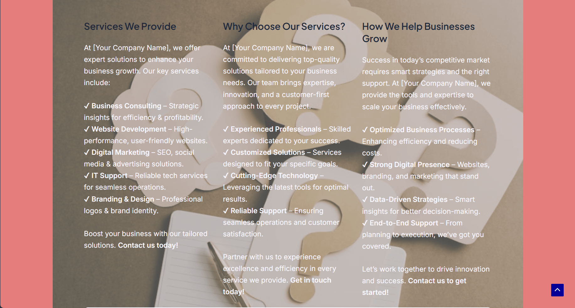 ✅ Service-Oriented Structure – Clearly defined sections for services, benefits, and client engagement.