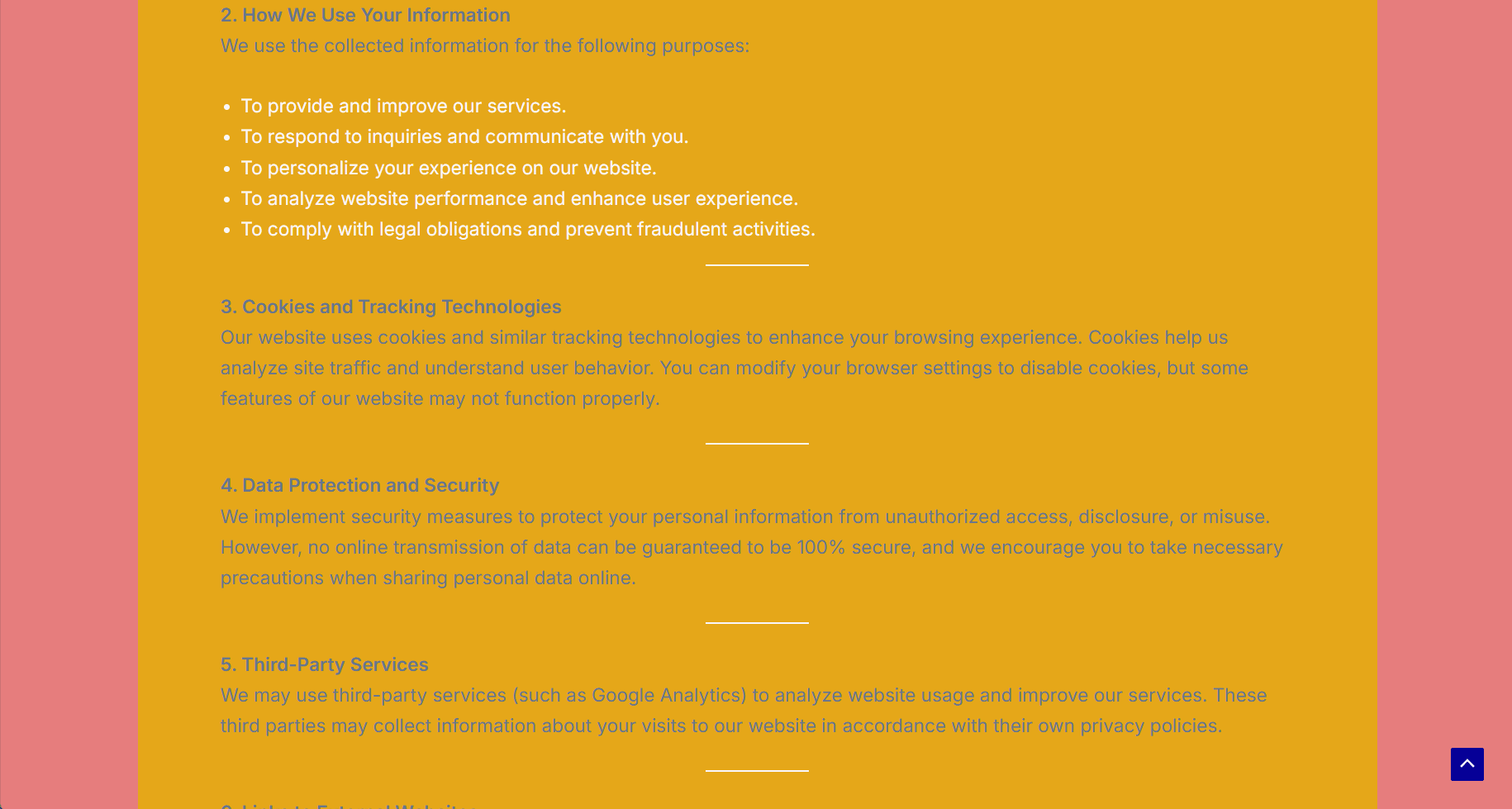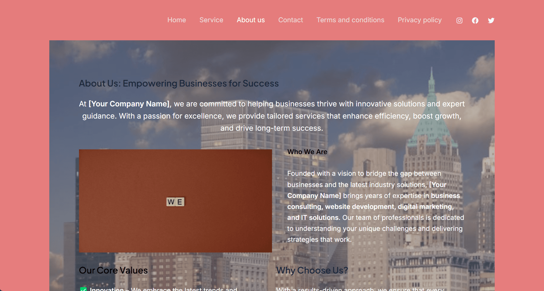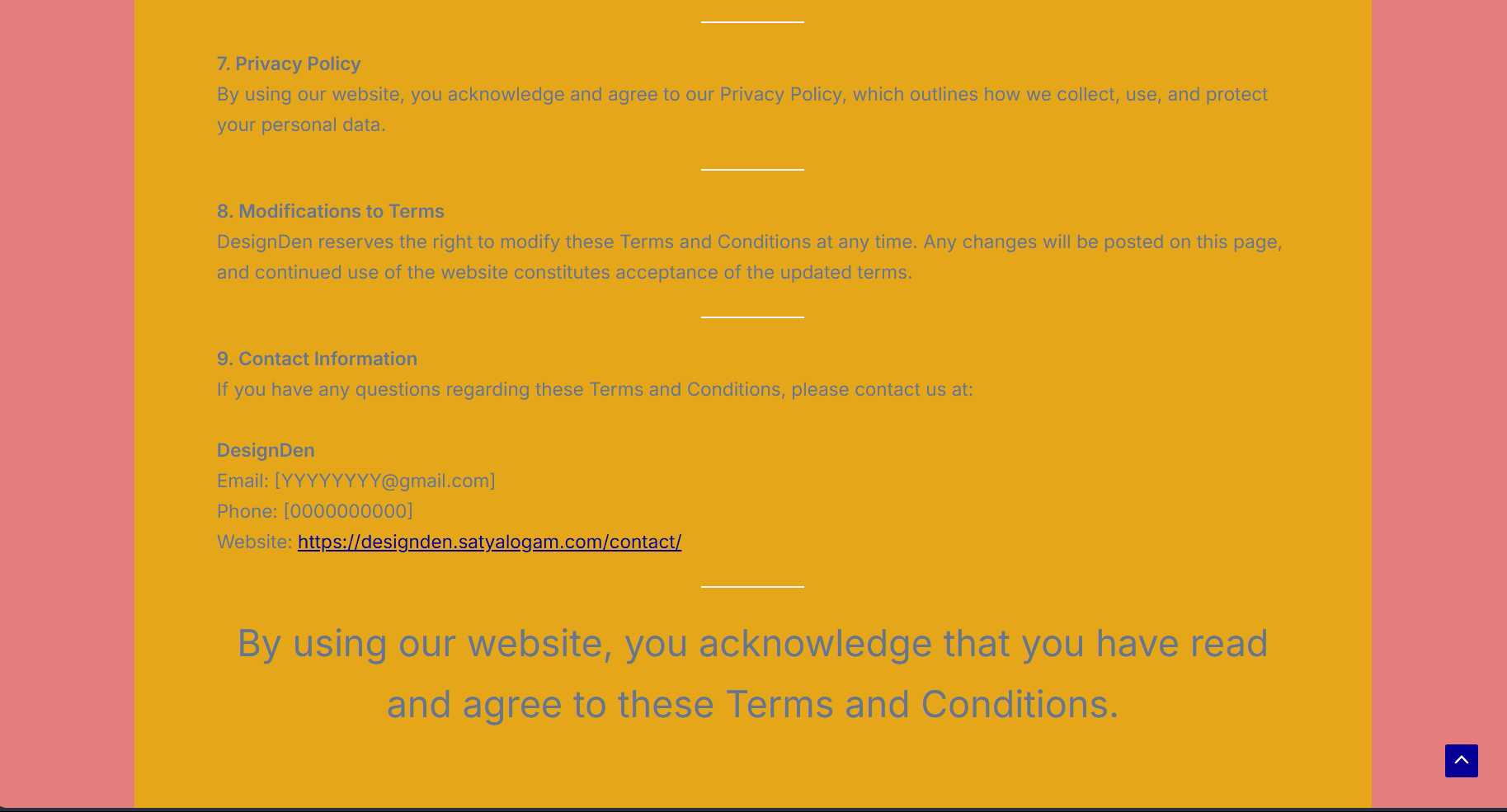 Professionally designed pages (Home, About, Services, Contact, Terms & Conditions, Privacy policy)