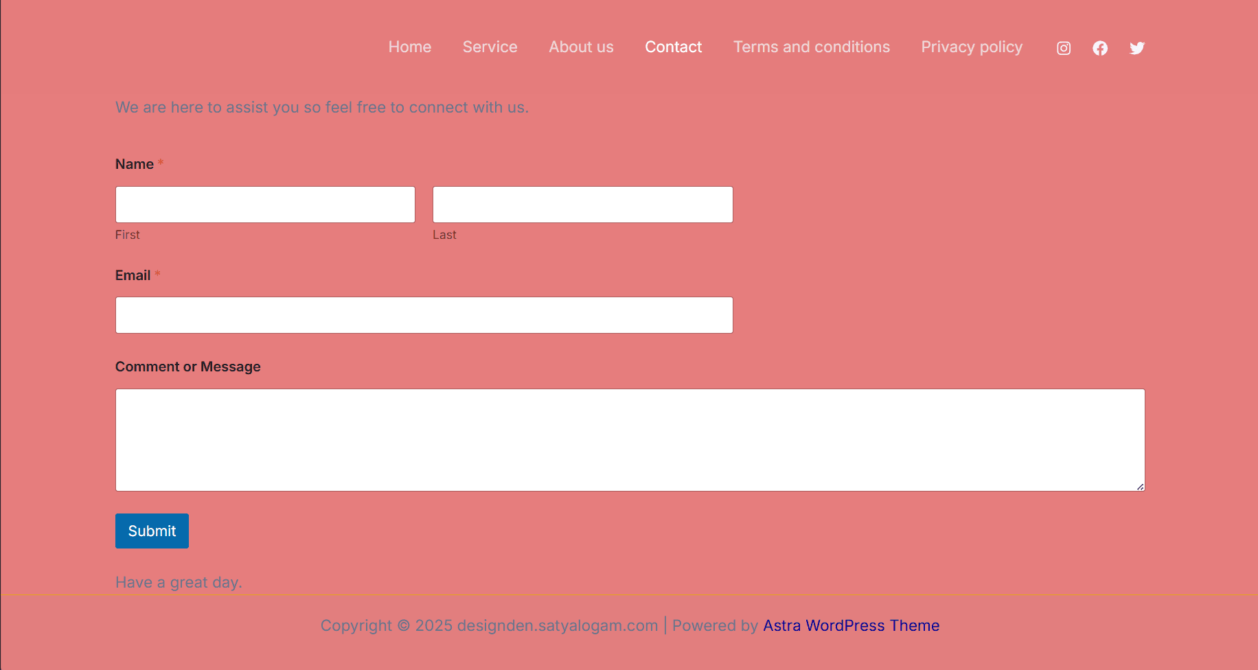 Fully functional WordPress website with the Astra theme